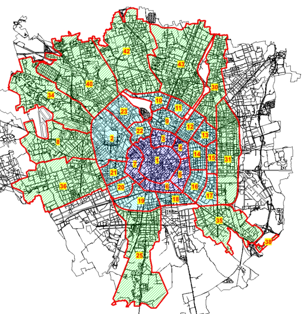 - Cerchia dei Bastioni – Area C (purple areas) – Areas 1, 3, 4, 5, 6, 7.