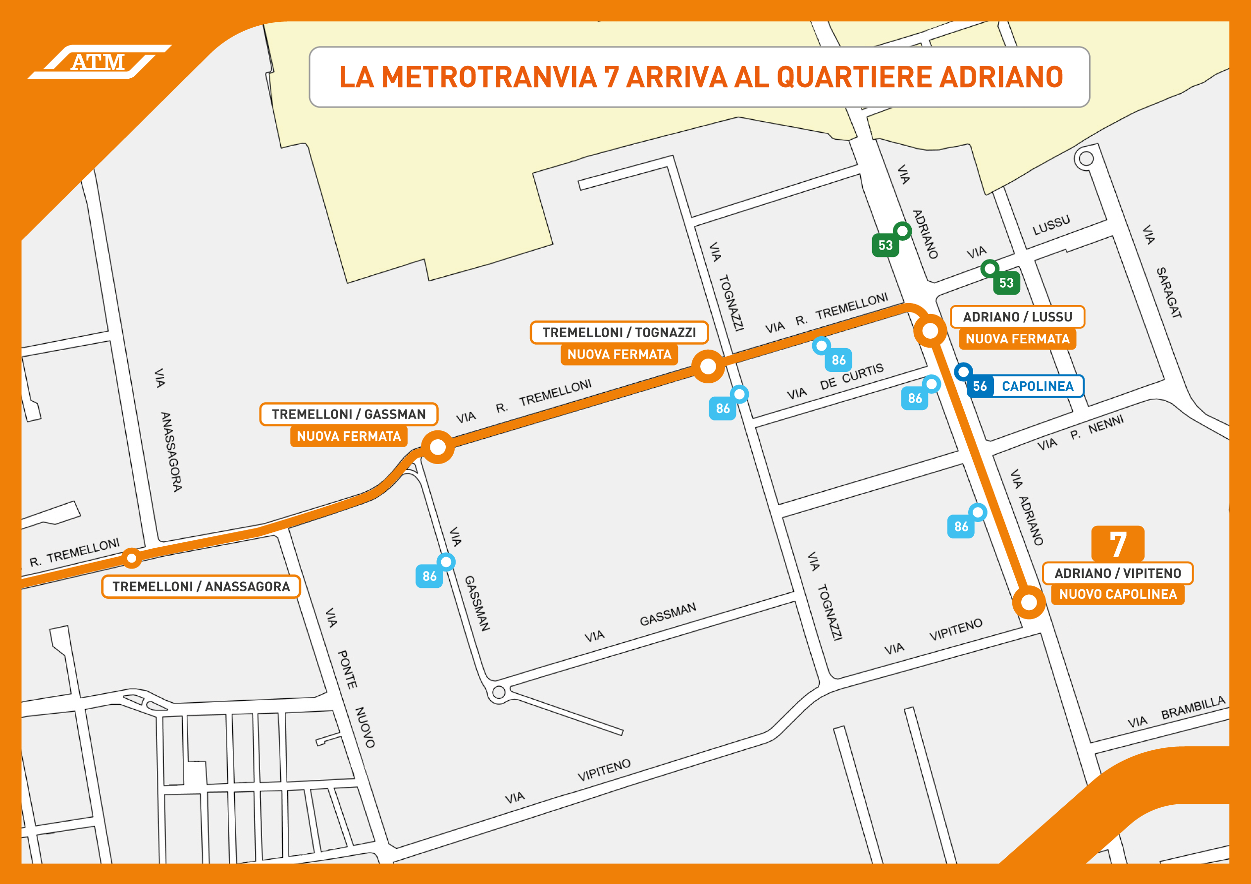 La linea 7 si allunga con nuove fermate e un nuovo capolinea nel Quartiere Adriano. In poche fermate di tram si possono raggiungere il quartiere di Precotto, le metropolitane, la stazione di Greco e l’università Bicocca.